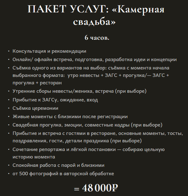 Стоимость Свадебной фотосессии