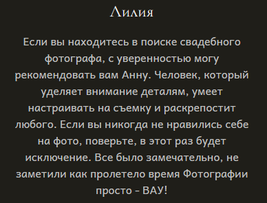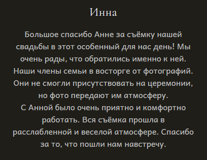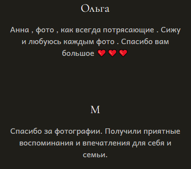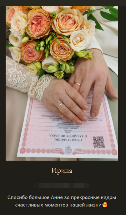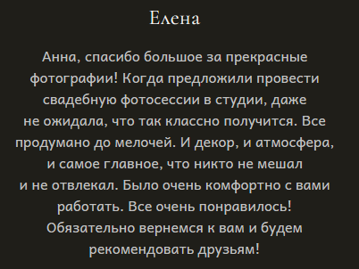 Я гарантирую 100% результат, именно поэтому мои клиенты всегда ко мне возвращаются, а мои работы публикуются в журналах, участвуют в выставках и освещают фоторепортажи.