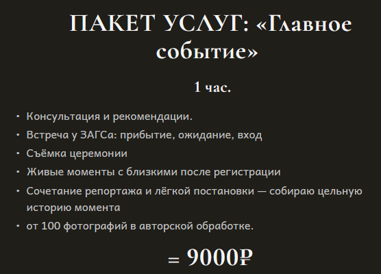 Это текстовый абзац. Нажмите на него и введите свой текст. Вы можете в любой момент вернуться к тексту и изменить его, например сделать текст подчеркнутым или курсивом. Используйте этот абзац, чтобы рассказать своим клиентам о себе или своих услугах. При необходимости текстовый абзац можно заменить, например, на заголовок, подзаголовок, список, номерной список или цитату.